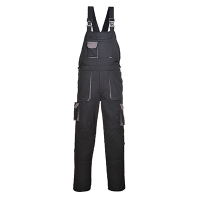 • The Portwest Texo cotton rich fabric creates a very comfortable yet practical garment. This bib & brace offers complete lower body and leg protection. Features include a concealed bib pocket, kneepad pockets and thigh pockets. Hook and loop at the leg end ensures a secure fit.