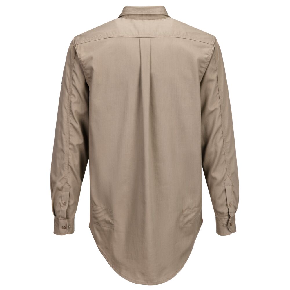 Lightweight and comfortableDual hazard protectionTwo chest pockets with button and flap closurePen division on left pocketShirt tail hem stays tucked inButton cuffs for a secure and comfortable fitProtects against radiant and convective heat2 pockets for secure storage40+ UPF rated fabric to block 98% of UV raysGuaranteed flame resistance for life of garment