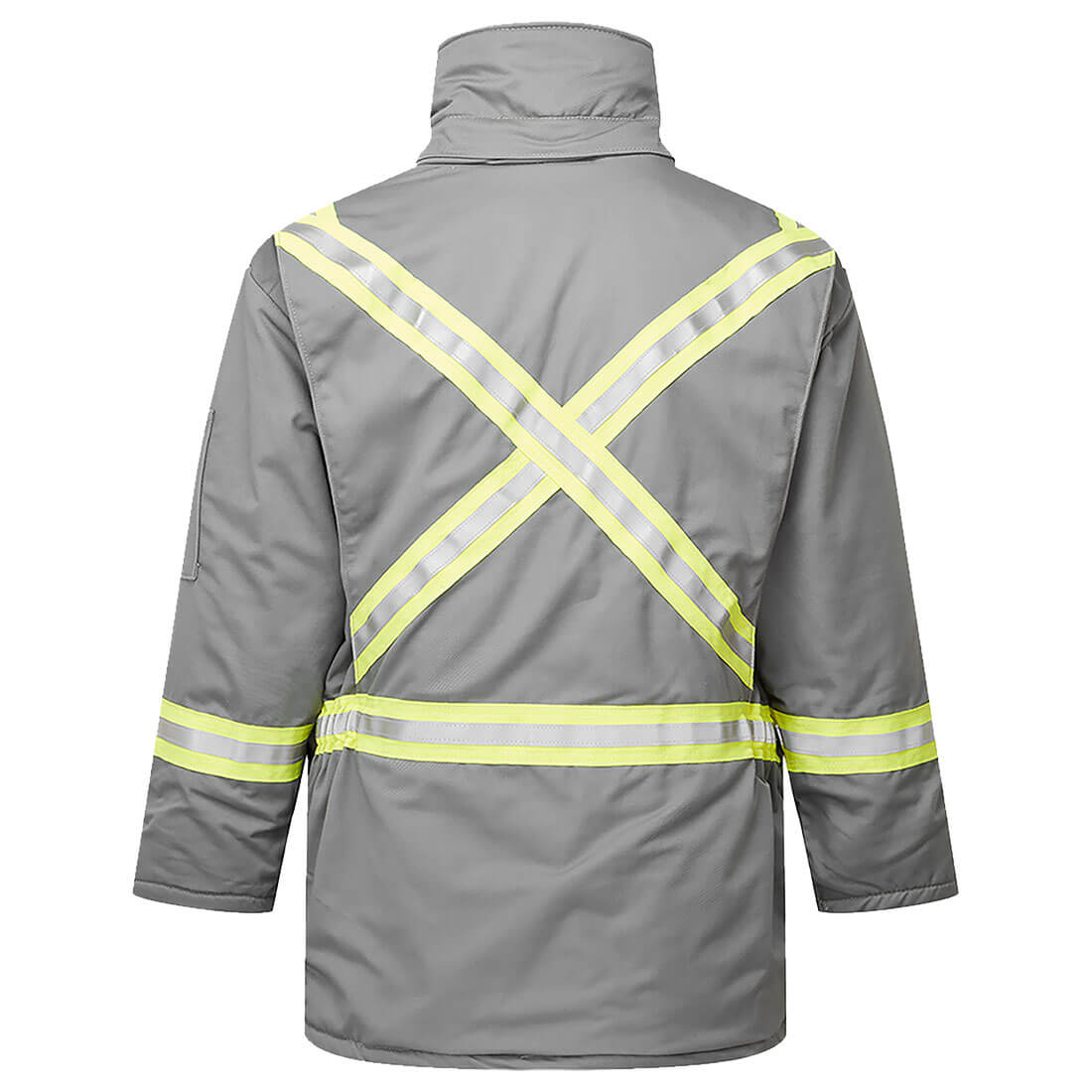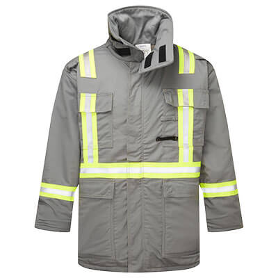 • SHELL FEATURES • Engineered for flame resistance and guaranteed for the life of the garment • Lowered X striping on back to allow more room for company logo or hooded undergarment • Flame resistant fleece lined hand pockets • Multi-purpose protection from electric arc, flash fire, molten ferrous metal and welding exposure • Two-way zipper INSULATION PACKAGE - 14 OZ QUILTED FEATURES • Wind and vapour barrier STANDARDS • Westex UltraSoft® fabric meets the requirements of: NFPA 2112, CGSB 155.20, NFPA 70E, CSA Z462, ASTM F1506